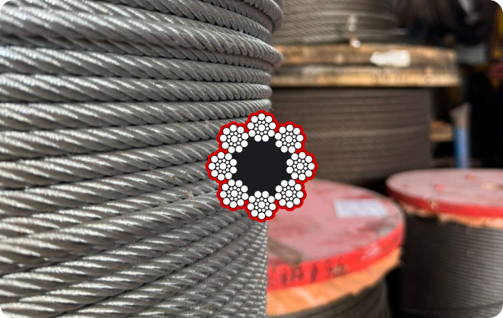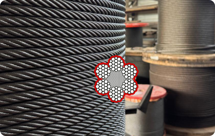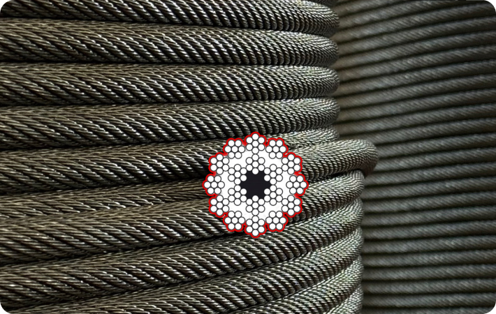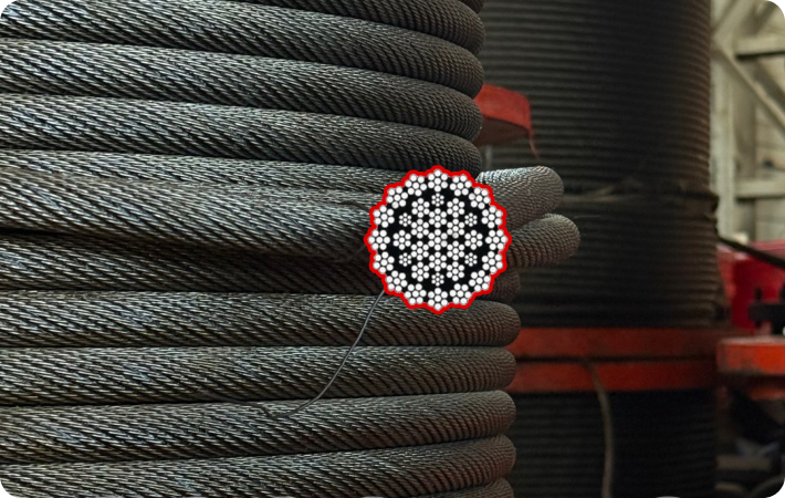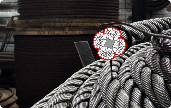 Канат европейского стандарта, некрутящяся конструкция с 35 прядями обеспечивает устойчивость к раздавливанию и растягиванию, повышенная изностойкость, особенная гибкость и сопротивление крутимости.